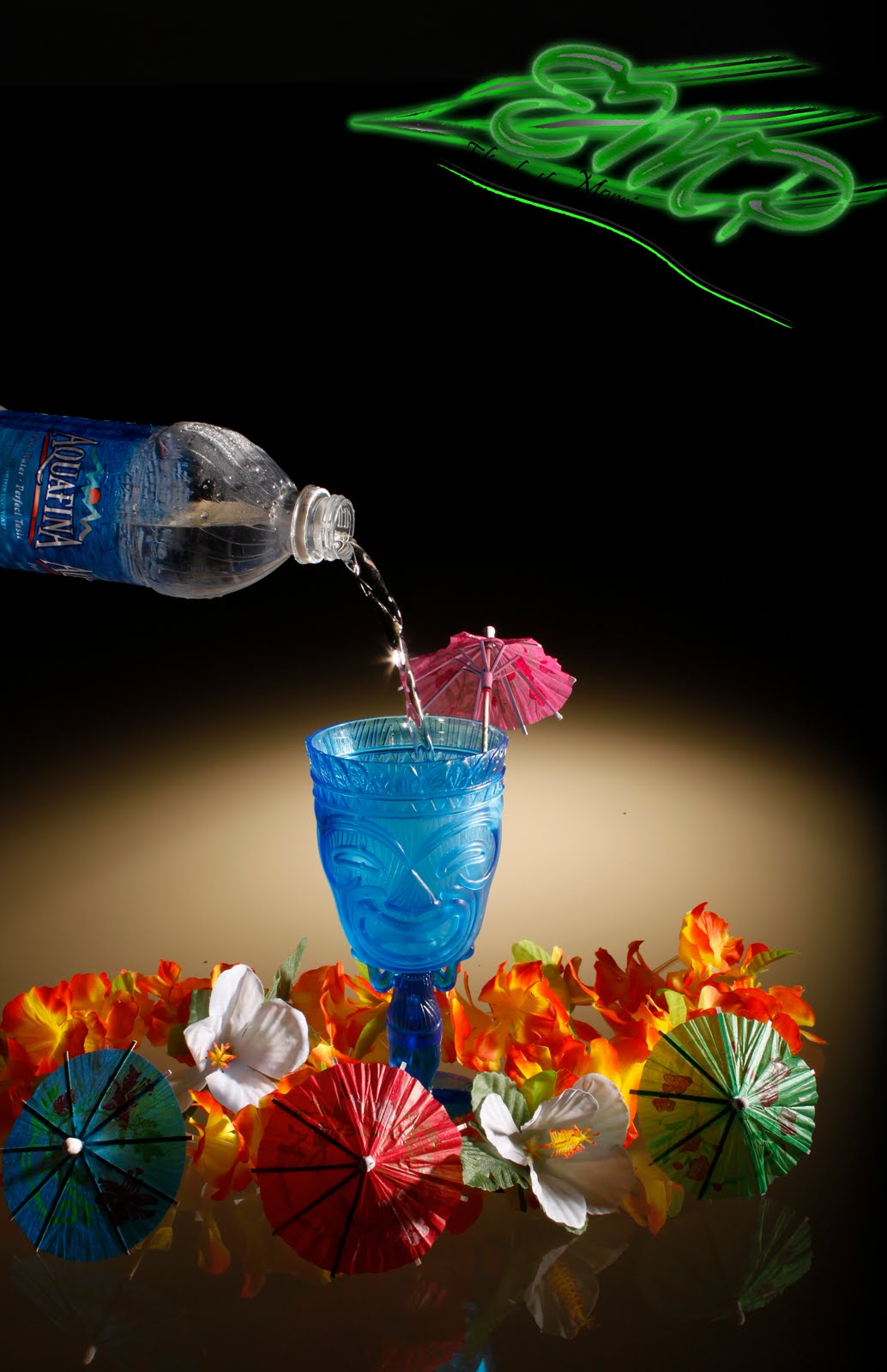 i had to shoot a small product in studio class, it had to have at least 2 other elements in the photo. my small product is the water and it complemented by the island decorations. i loved the sparkle in the water in this image.